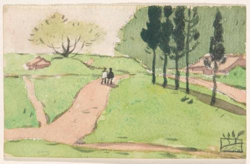 田中 恭吉 『未知草カード』[第一]より[荷馬車のある風景]