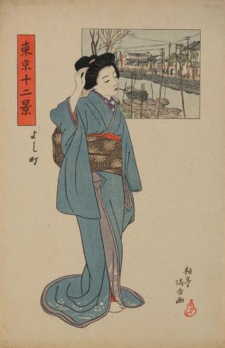 石井 柏亭 (伊上凡骨[刻]) 『東京十二景』よし町